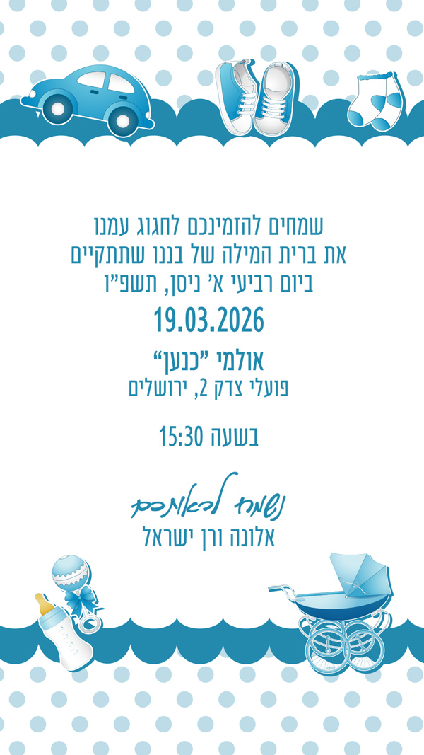 ההזמנה הדיגיטלית תישלח אליכם תוך 24 שעות מרגע ההזמנה באתר, וברוב המקרים בתוך שעה, ישירות לוואטסאפ או למייל שלכם.